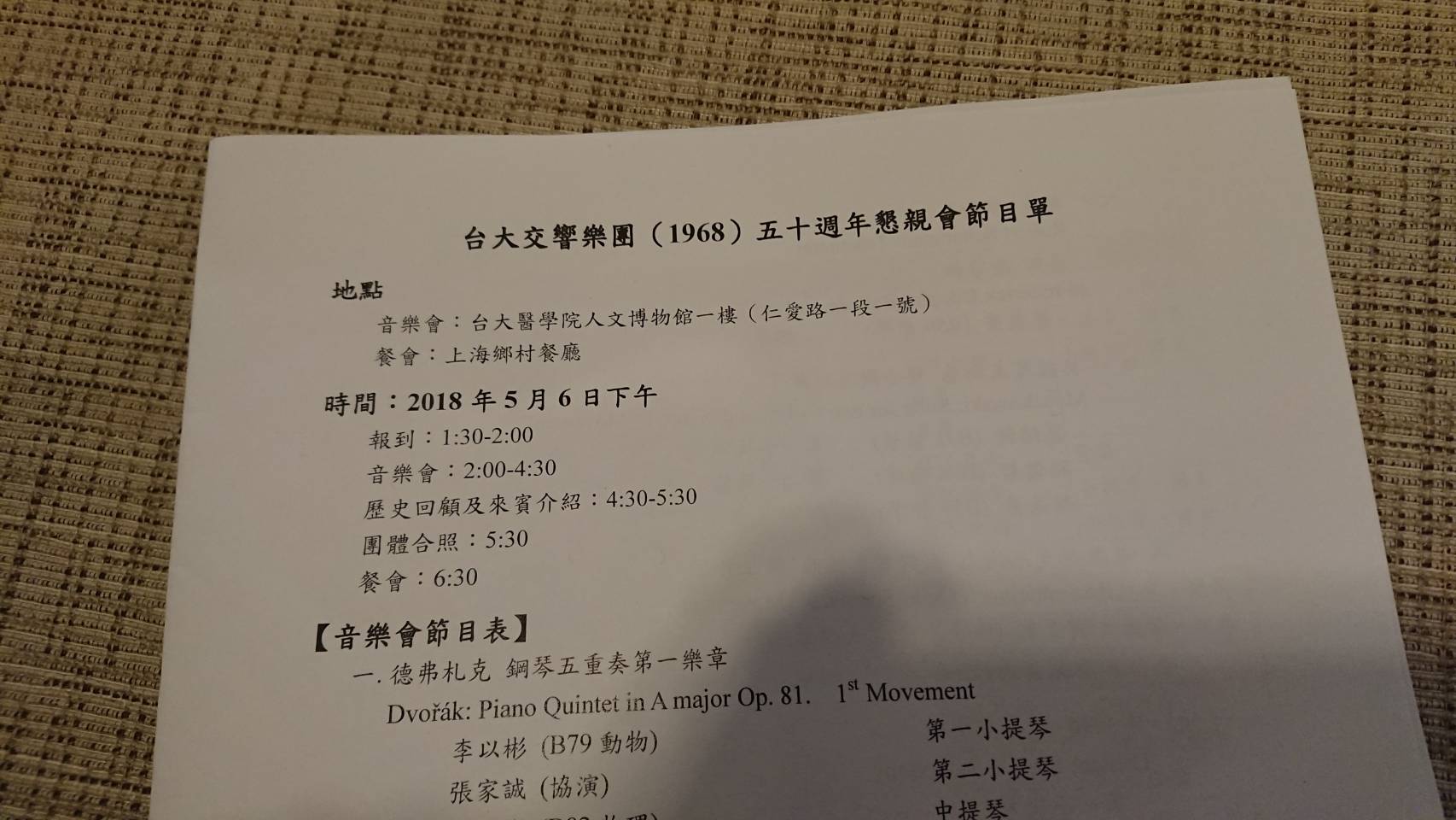 5月6日、三船文彰が所属していた台湾大学交響楽団の50周年記念演奏会にて、ルース先生が演奏しました。